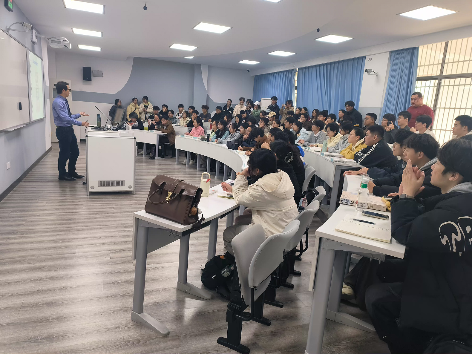 下午,在2S343智慧教室,杨荣武教授以“糖异生”为主题,为本科生带来一堂内容深刻、形式新颖的生物化学课程。他摒弃传统灌输式教学,以巧妙类比和生动案例深入浅出讲解复杂代谢过程,并现场利用教室台阶演示能量需求概念,使抽象知识变得可视、可感。风趣的讲授与丰富的肢体表达不断点燃课堂氛围,教室里不时爆发出阵阵笑声和掌声,同学们积极提问、深入思辨,师生互动热烈。课后,杨荣武教授被热情的员工团团围住,与同学们继续交流生化学习,他鼓励同学们在努力学好专业的同时关注身心健康,并以“再叙生化情”寄语浙理工学子。盛清教授总结时表示:“杨教授的示范教学为我们提供了教学新理念和教学新模式,更彰显了优秀教师的职业素养。”此次示教课不仅深化了员工对生物化学知识的理解,也为公司教师提供了观摩学习的宝贵机会。