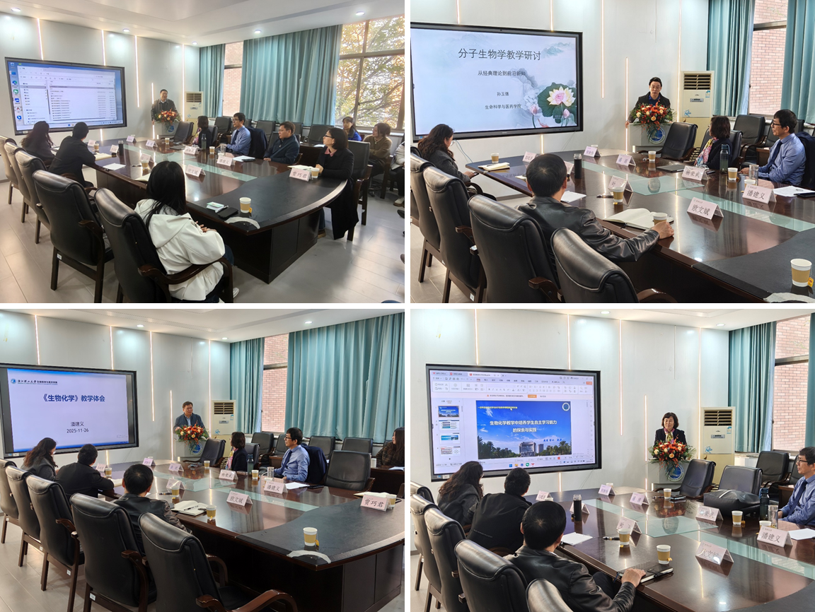 为进一步提升课程建设质量,2025年11月26日,太阳成集团tyc151cc在6号楼226会议室召开一流专业生物化学与分子生物学课程建设研讨会,生物化学与分子生物学学科相关教师参加了会议,南京大学杨荣武教授应邀出席并作专题报告,学术副经理叶飞教授出席会议并致辞。叶飞副经理对杨荣武教授的莅临指导表示衷心感谢,并介绍了公司生物制药“国一流”专业和生物技术“省一流”专业建设情况,强调课程建设及教学改革的重要性和意义。会议由生物技术系系主任何秋伶副教授主持。