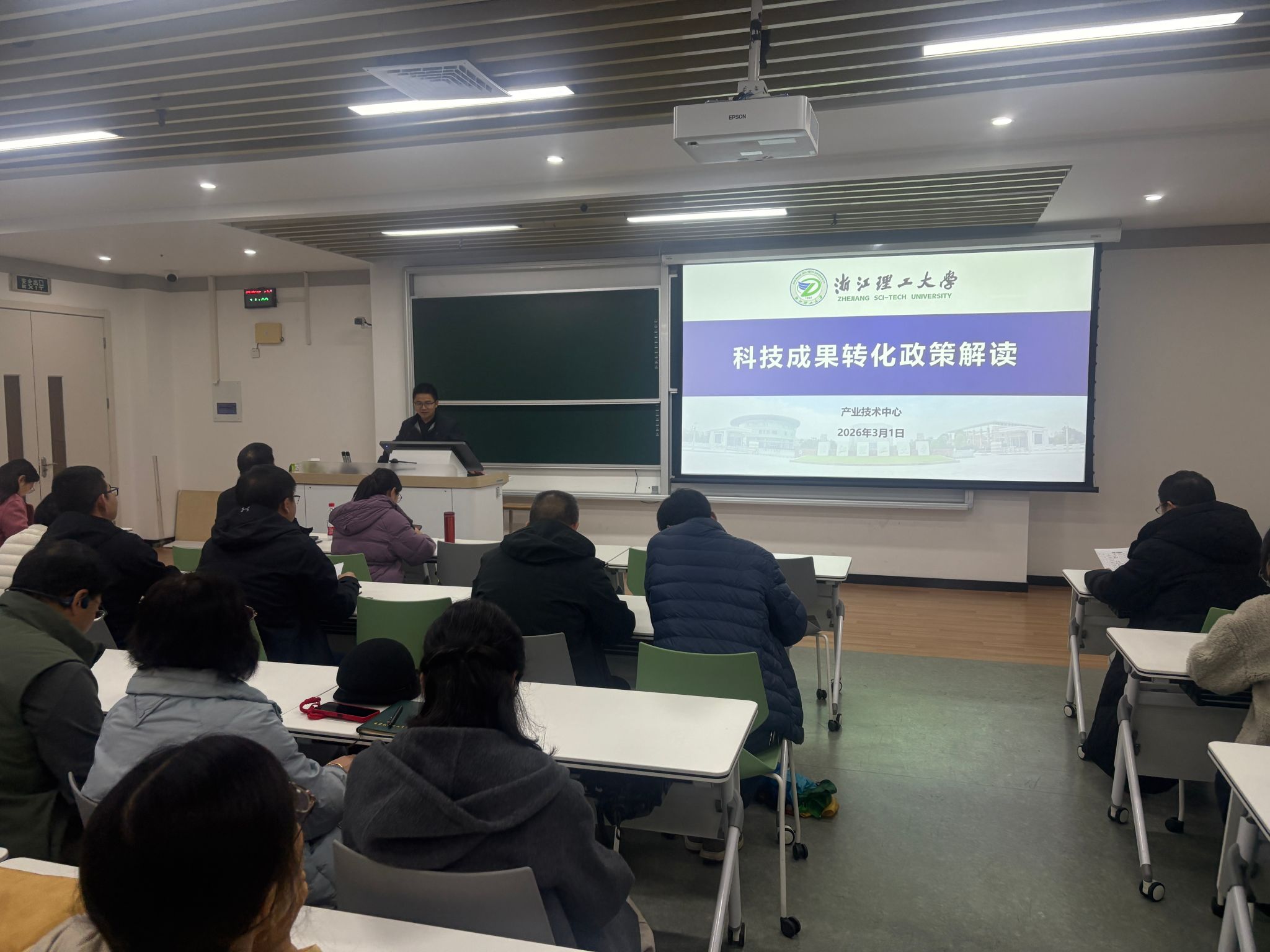 会前,学校产业技术中心副主任张义玲作科技成果转化政策解读。会上,全体教职工共同学习教育部新春第一会相关视频。
