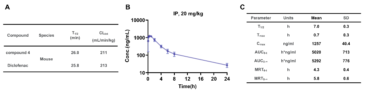 图6. 化合物4的代谢稳定性和药代动力学特性。